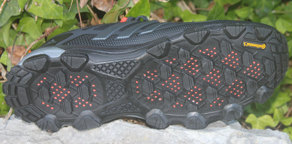 A sola foi o que mais me chamou a atenção, tacões mais agressivos com a tecnologia TRAXION, perfeitos para todo o tipo de terreno, sola microperfurada que permite uma maior flexibilidade e borracha continental, que como comprovei dá muita segurança em todo o tipo de terreno.