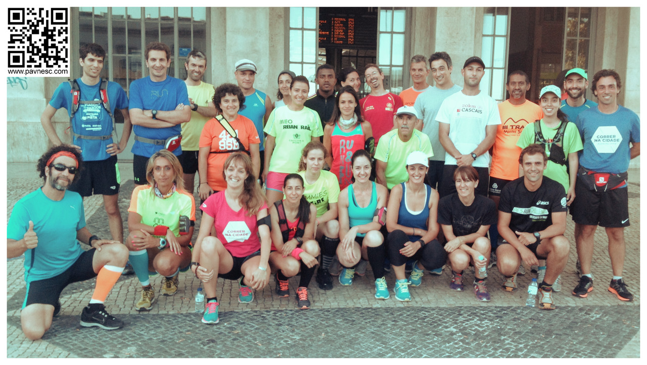 Antes de nos pormos ao caminho o João muito franco sobre o que iríamos encontrar ao longo deste treino e talvez por isso gravei na memória a sua indicação final "cabeça, estômago e pernas fortes." Não sei se esta dica foi em modo inibitório para os mais medricas ou não, mas a verdade certo é que criou-se um grupo muito bem composto de cerca de 30 pessoas em Sta. Apolónia... Ah valentes!