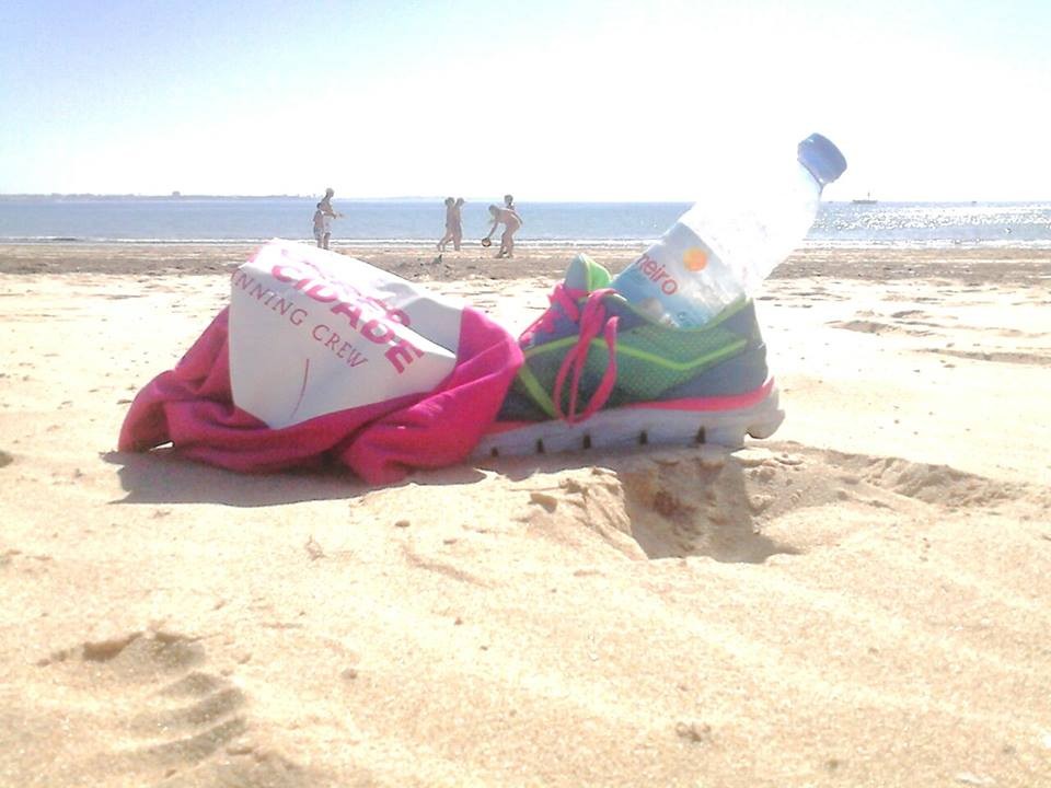 O terceiro treino, foi hoje, sábado de manhã pelas 9h00 na Meia Praia, no Treino Correr na Cidade Summer Sessions. Fui de bicicleta ao ponto de encontro do treino (10km), onde só apareceu uma pessoa, o João, que não conhecia até hoje. Foi muito bom levantar-me tão cedo e é certo que sozinha não teria tido coragem de sair de casa às 8h30 para ir de bicicleta à praia para treinar. O treino foi muito bom, fizemos 10km na areia molhada da praia em cerca de uma hora, seguido de uma boa sessão de alongamentos, pois o João é um perito em ioga.