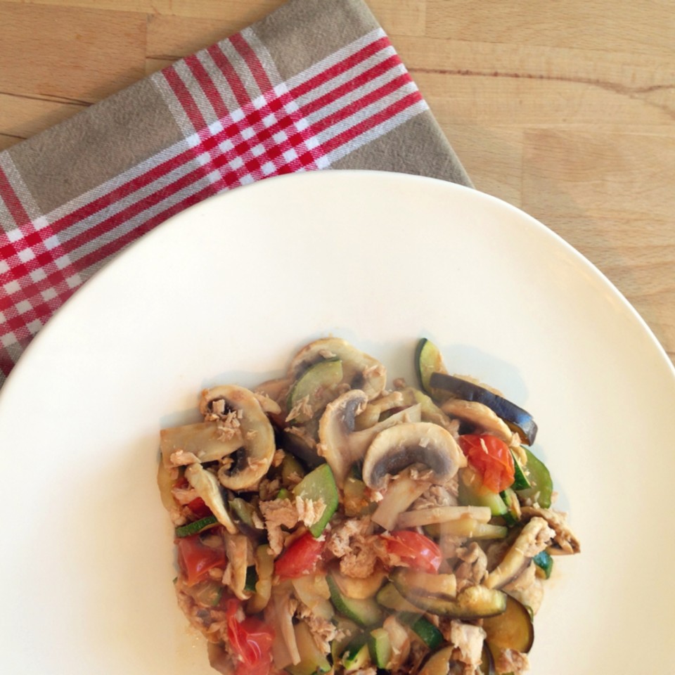 #Juntar tudo numa frigideira com um bocadinho de azeite e 2 ou 3 colheres de sopa de água.