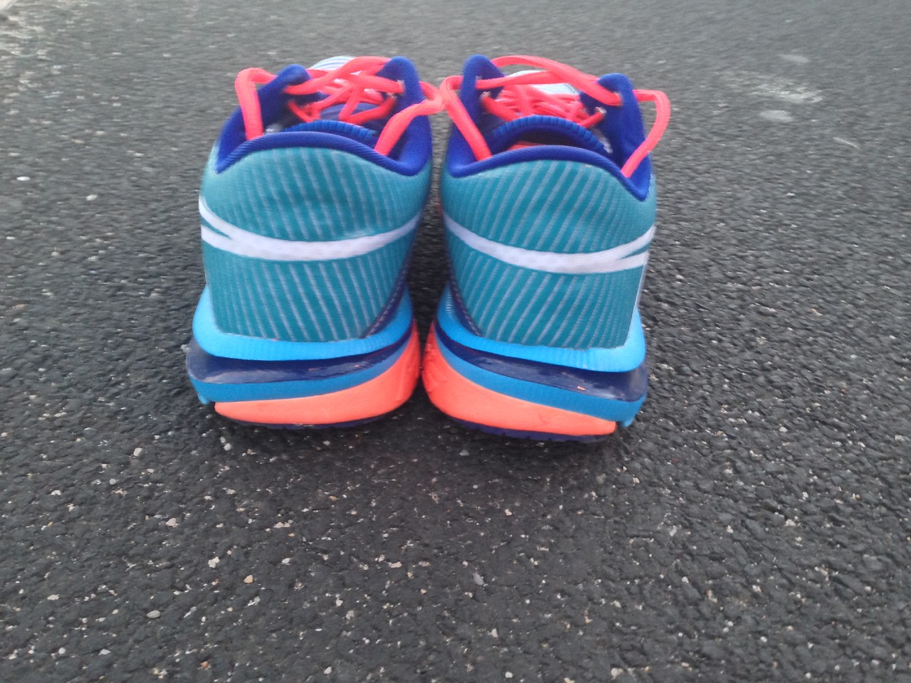 A outra característica deste é o seu design. São bonitos e têm um design disruptivo, tendo em conta o classicismo que a Asics vinha praticando até lançar este modelo. São ténis que dão nas vistas, mas pelas boas razões. O modelo que me calhou, em azul, branco e laranja, é o mais bonito de todos os Asics que já tive na mão. Confesso que fico vaidoso com eles calçados.