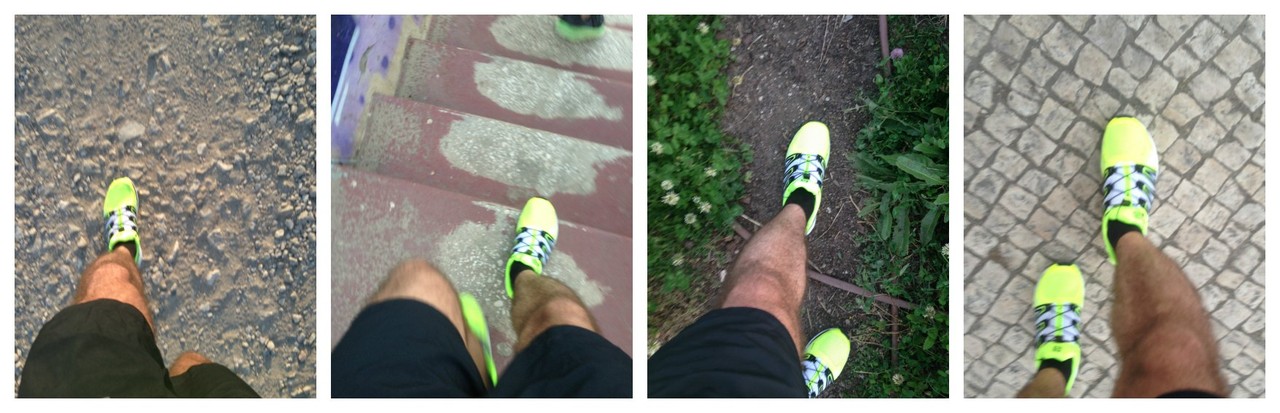 Como são ténis para a passada neutra, substitui a palmilhas de origem pelas Iron Man para pronadores que uso frequentemente. Comecei a correr um pouco a medo, não fosse o pé direito (que sofreu a fascite) ou os joelhos começarem a doer. Mas não. Tudo sem dores. Claro que foi um treino muito calmo, a um ritmo lento, mas deu para peceber várias coisas sobre estes X-Scream: