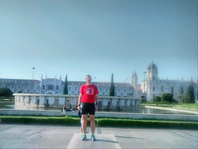 Ao fim de +/- 2km chegada ao CCB e ao Jardim da Praça do Império onde tirei a única foto do dia. Um casal estrangeiro espantado com a humidade que rodeava o meu tronco aceitou com algum sorriso à mistura retirar a foto. Em contrapartida, tirei eu uma a eles e depois dos habituais agradecimentos, altura de meter pés a andar.